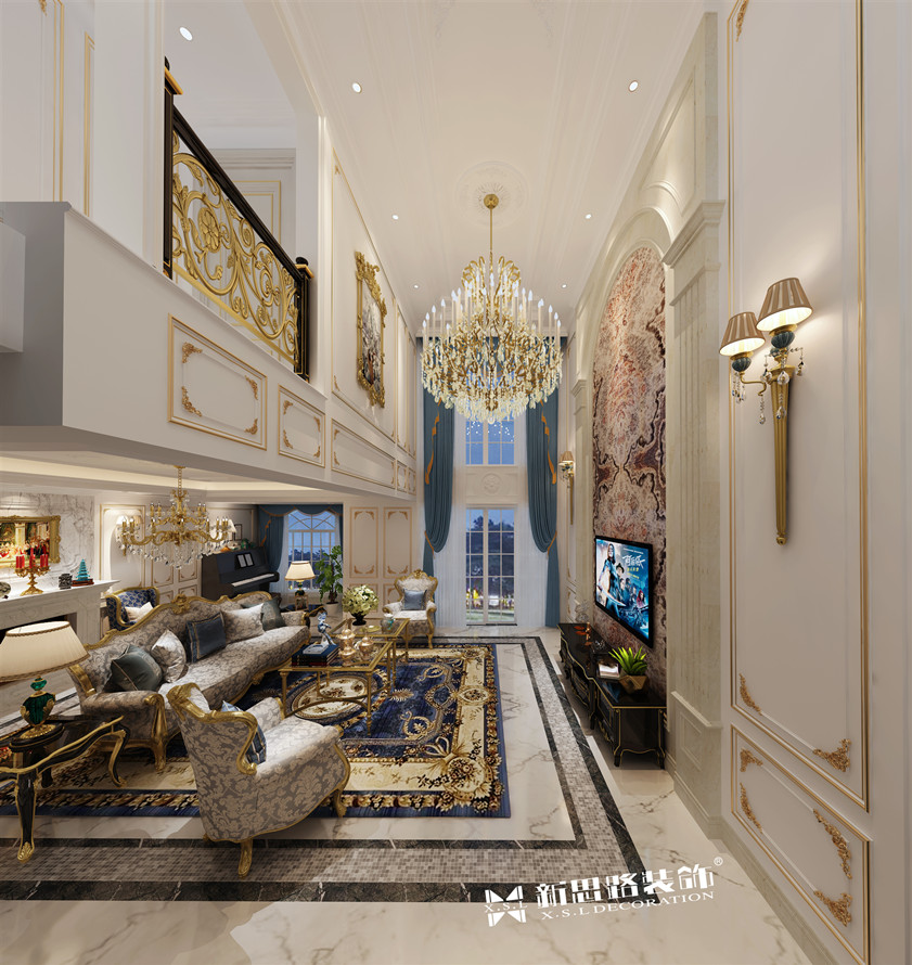 ● 戶型面積:350㎡ ● 設(shè)計(jì)風(fēng)格:法式輕奢 ● 整體費(fèi)用:130萬(wàn) 效果圖欣賞