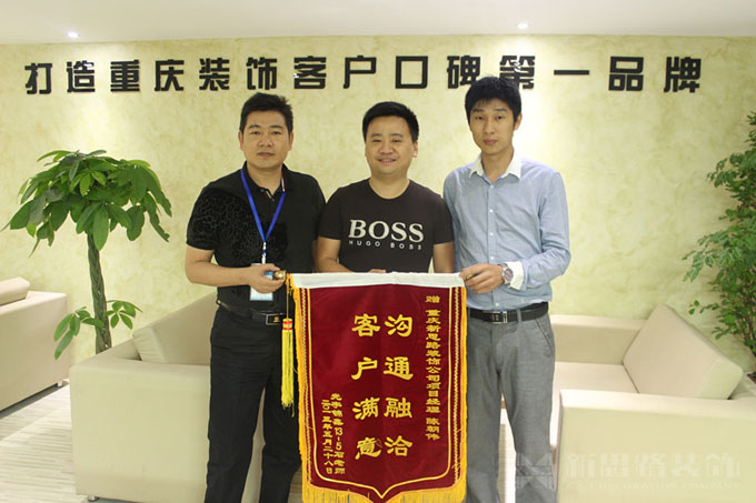 新思路裝飾自精心推出“放心工程”、“品質(zhì)工程”系統(tǒng)以來,讓廣大業(yè)主的裝修流程更加放心,更加有保障,同時(shí)也獲得了眾多業(yè)主的贊揚(yáng)和褒獎(jiǎng)。自5月25日首創(chuàng)十方界的賀老師送來錦旗感謝之后,5月29日上午10點(diǎn),新思路裝飾南坪旗艦中心又迎來了一位特殊的客人—光宇錦鑫13石老師將一面寫著“溝通融合,客戶滿意”的錦旗送到了公司,以感謝新思路裝飾精湛的裝修品質(zhì)和貼心的裝修服務(wù)。