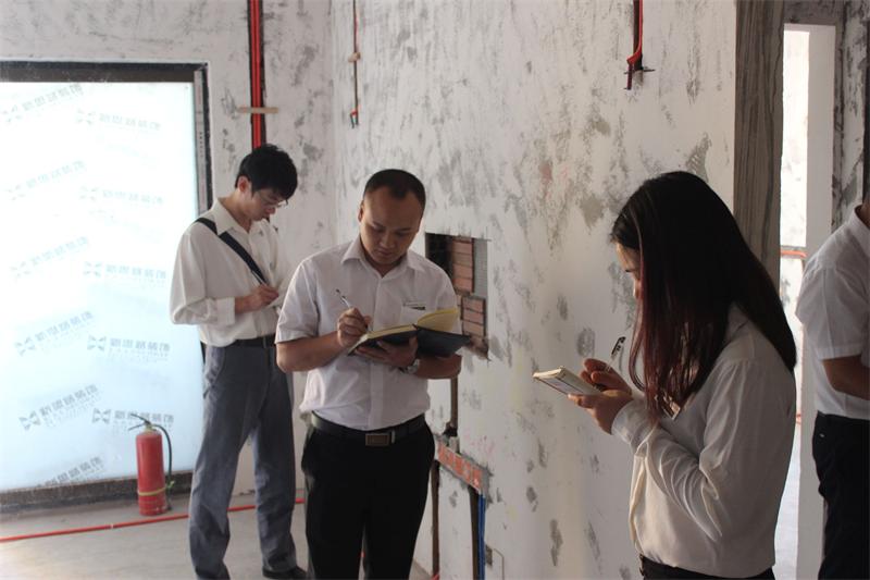 細(xì)微極致的成品保護(hù)、清晰明了的安全提醒、整齊的材料擺放……剛剛走出電梯還未步入新思路裝飾工地,就能感受到新思路對待工地的負(fù)責(zé)態(tài)度:入戶門窗都有保護(hù)膜“貼身”保護(hù)。在工地現(xiàn)場,各個(gè)工種工藝也都精彩展現(xiàn):水電排版的清爽整齊、泥工的平整清潔、木工的精雕細(xì)琢……處處顯示出新思路高品質(zhì)的工程質(zhì)量。在檢查過程中,巡查人員嚴(yán)格遵循公司工地檢查的相關(guān)規(guī)定,認(rèn)真仔細(xì)地敲打瓷磚,檢驗(yàn)有沒有存在空鼓的情況;衣柜、抽屜的做工是否達(dá)到公司工藝標(biāo)準(zhǔn);現(xiàn)場形象是否規(guī)范;各項(xiàng)保護(hù)工作是否到位。對于在檢查中發(fā)現(xiàn)的問題和不符合公司施工規(guī)范的地方,客服人員會(huì)認(rèn)真記錄在案,并現(xiàn)場通知相關(guān)項(xiàng)目經(jīng)理及時(shí)整改到位。而在巡查完之后,工程部還將在每周一的例會(huì)上通報(bào)工地巡查情況,及時(shí)總結(jié)問題和亮點(diǎn),同時(shí)對工地進(jìn)行評比,積極獎(jiǎng)勵(lì)優(yōu)秀工程質(zhì)檢和項(xiàng)目經(jīng)理。