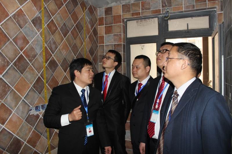 張總正在詳細講解墻面貼磚工藝細節(jié)