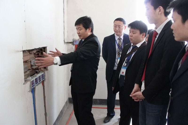 工程部文經理在向大家介紹水電工藝細節(jié)
