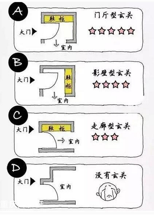 ,然后能能卸下一天的疲憊,這就是玄關(guān)的功能。一般家庭的玄關(guān)設(shè)計(jì)有如下幾種,